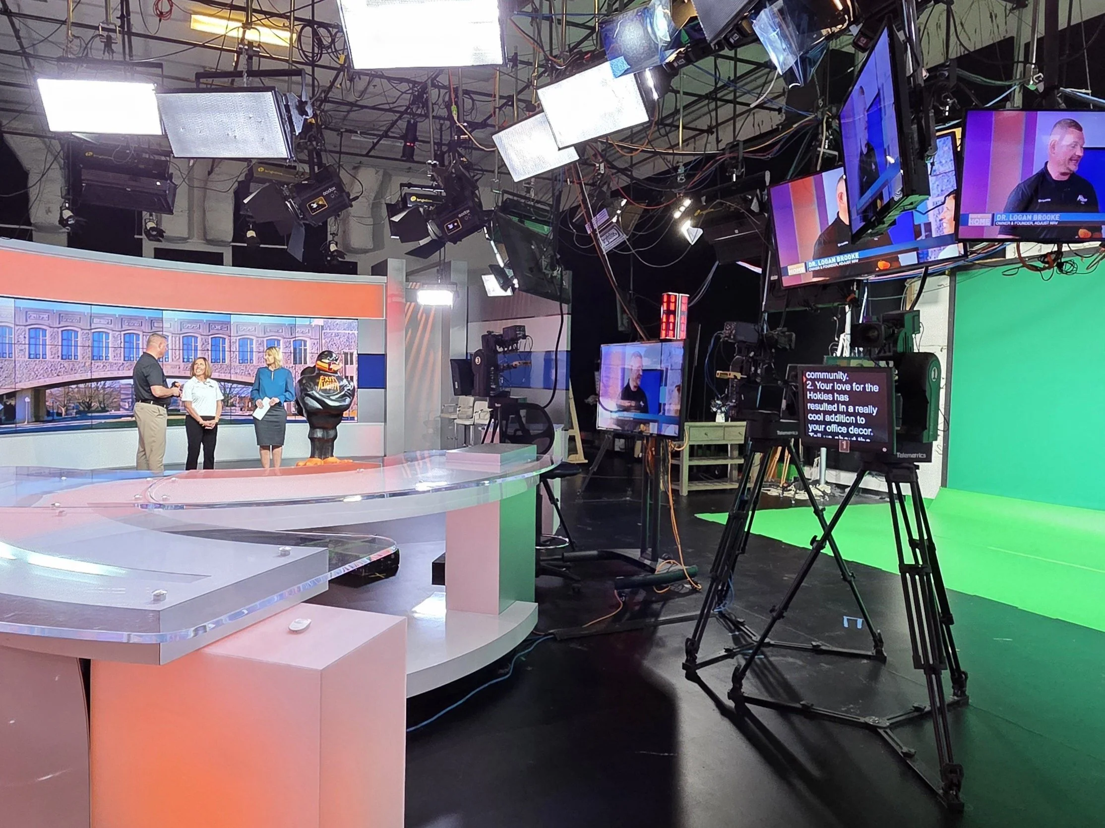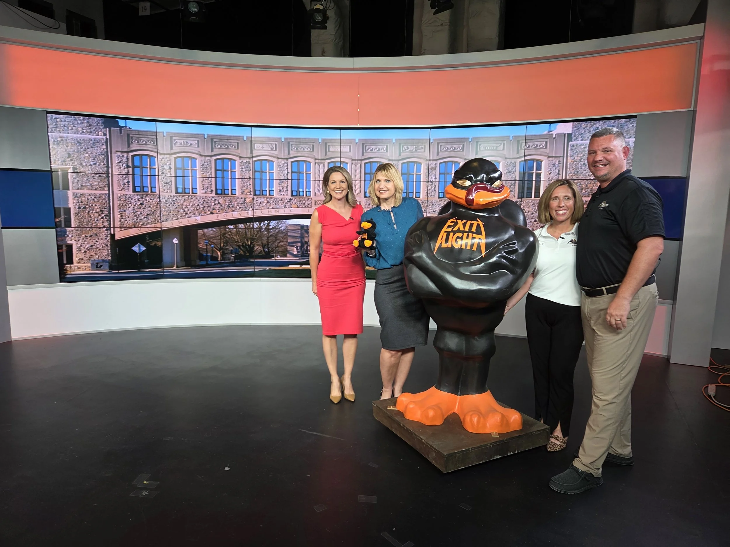 Our practice is so proud to call the Virginia Tech Corporate Research Center home, which lets us serve Blacksburg, Christiansburg, Radford and more in a convenient way (hello, easy parking!). Not only that, but Dr. Brooke and his wife Tess have called the Blacksburg community home for 16 years. During that time, Blacksburg has become much more than just where they work—it’s where they now have deep roots and some of their best friends. They have a beautiful life here and without question a love for cheering on the Hokies! Whether it’s attending football games, supporting the arts, or joining in community events, the Virginia Tech spirit is woven into their lives. This is what prompted the Exit Light Hokie Bird and ultimately brought them to the afternoon show with WDBJ7.
